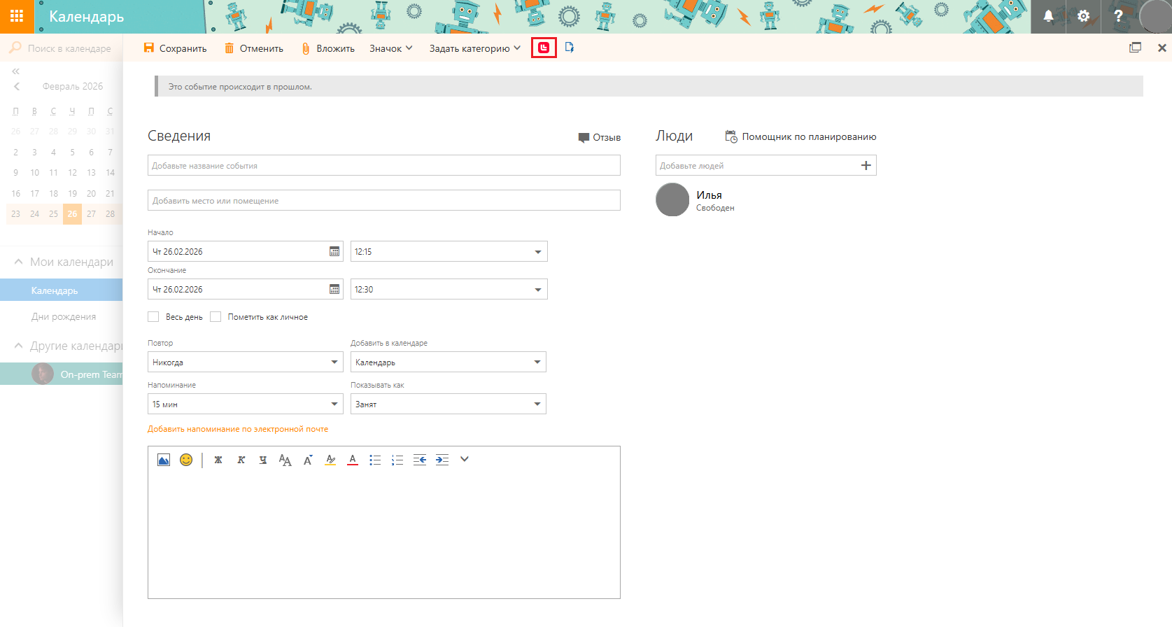 Готово. Теперь вы сможете создавать встречи прямо из календаря Microsoft Outlook.