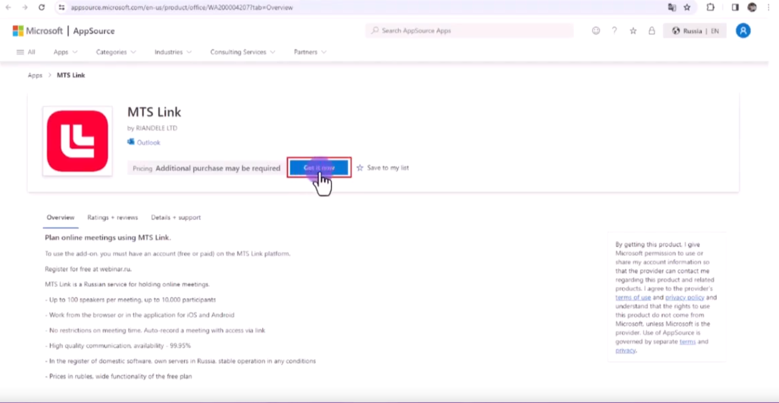 Можно установить надстройку из маркета Microsoft AppSource по прямой ссылке. Нажмите «Get it now» и повторите действие из пункта 3