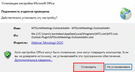 Скачать актуальную версию установщика по ссылке https://apps.webinar.ru/outlook-plugin/. После этого открыть файл и запустить установку. Если нажать на «Параметры», можно изменить путь установки плагина