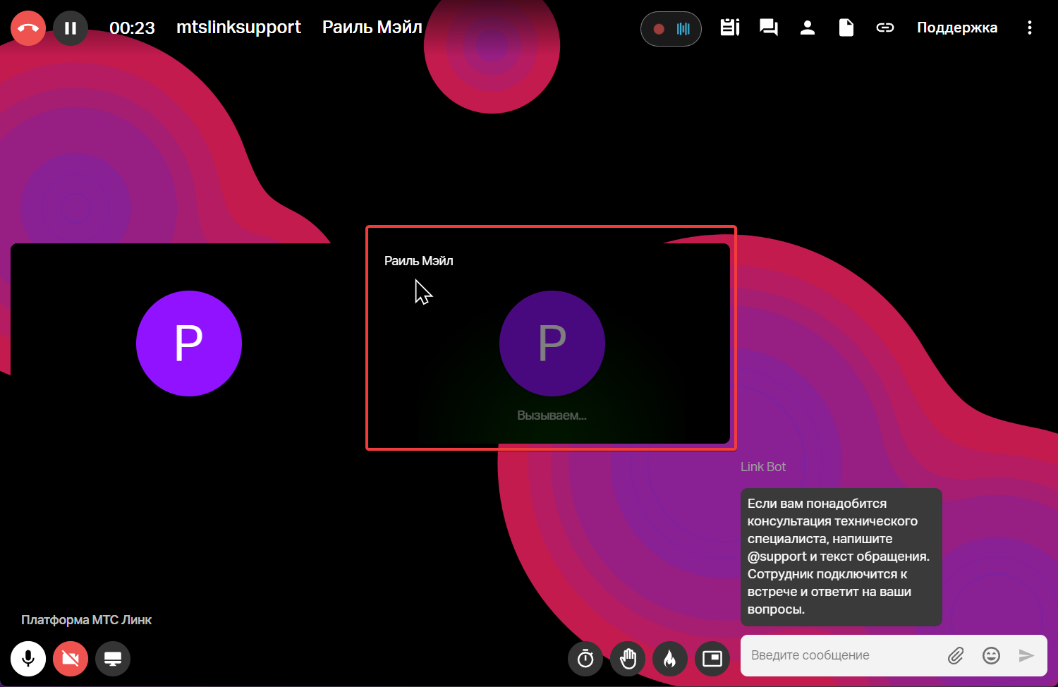 Посмотрите на статус: он автоматически меняется, когда пользователь начинает или присоединяется к встрече в МТС Линк.