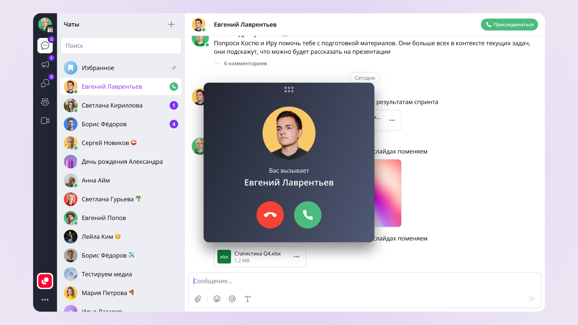 Виртуальная ВКС при дозвоне. Теперь во время звонка в Личных Чатах вы увидите окно ВКС собеседника со статусом дозвона. Это делает звонки более понятными и предсказуемыми.