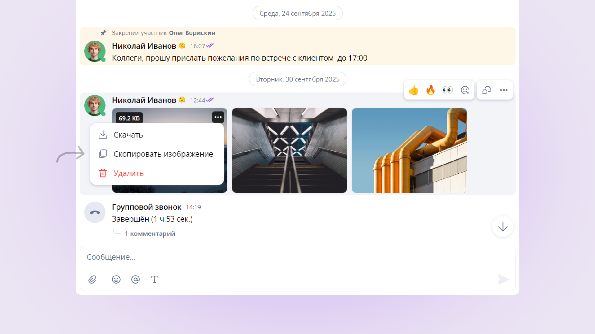Используйте сочетания клавиш Ctrl+V или Cmd + V, чтобы прикрепить изображение к сообщению или отправить отдельно.