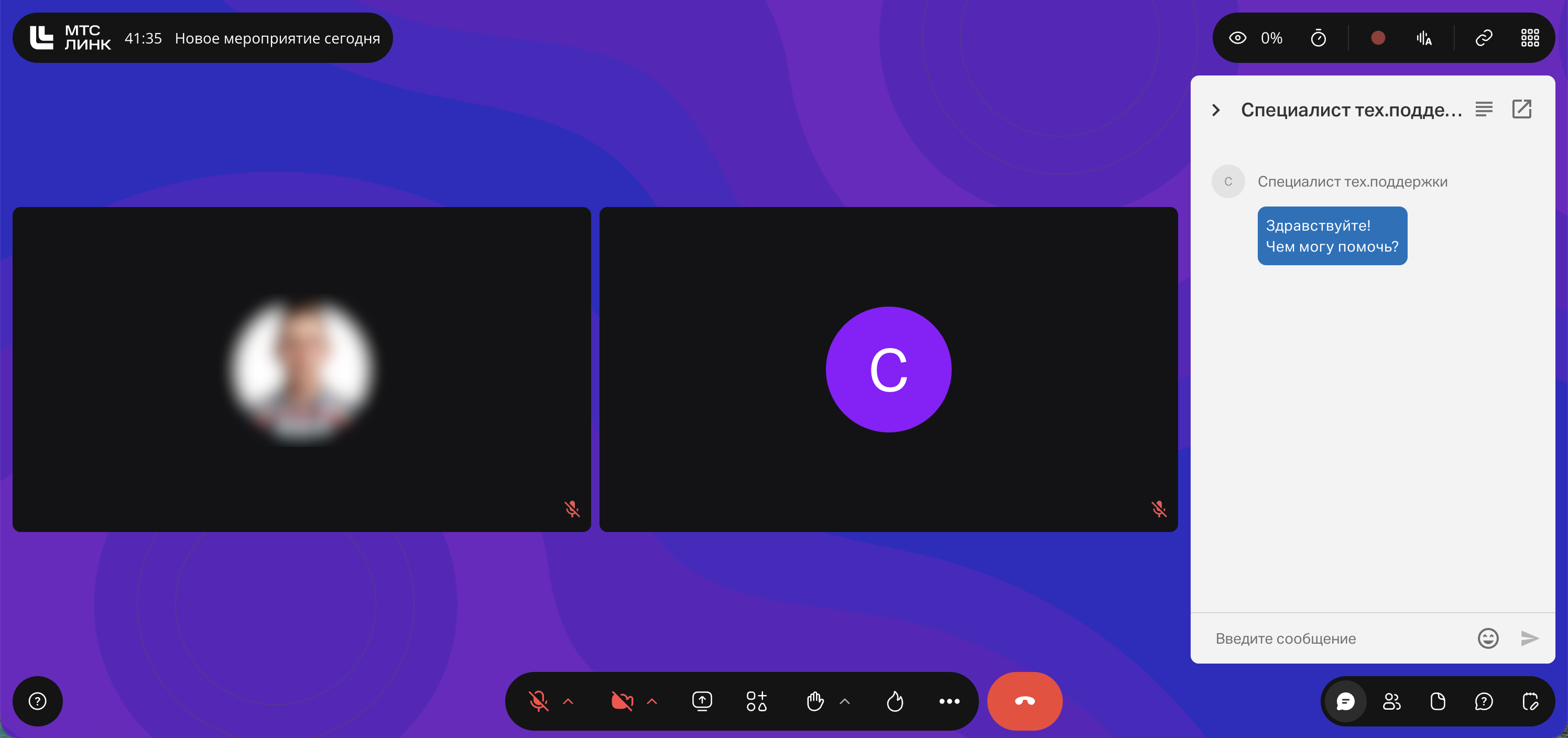 вызвать специалиста в онлайн-чате (недоступно при подключении к мероприятию с мобильного устройства);