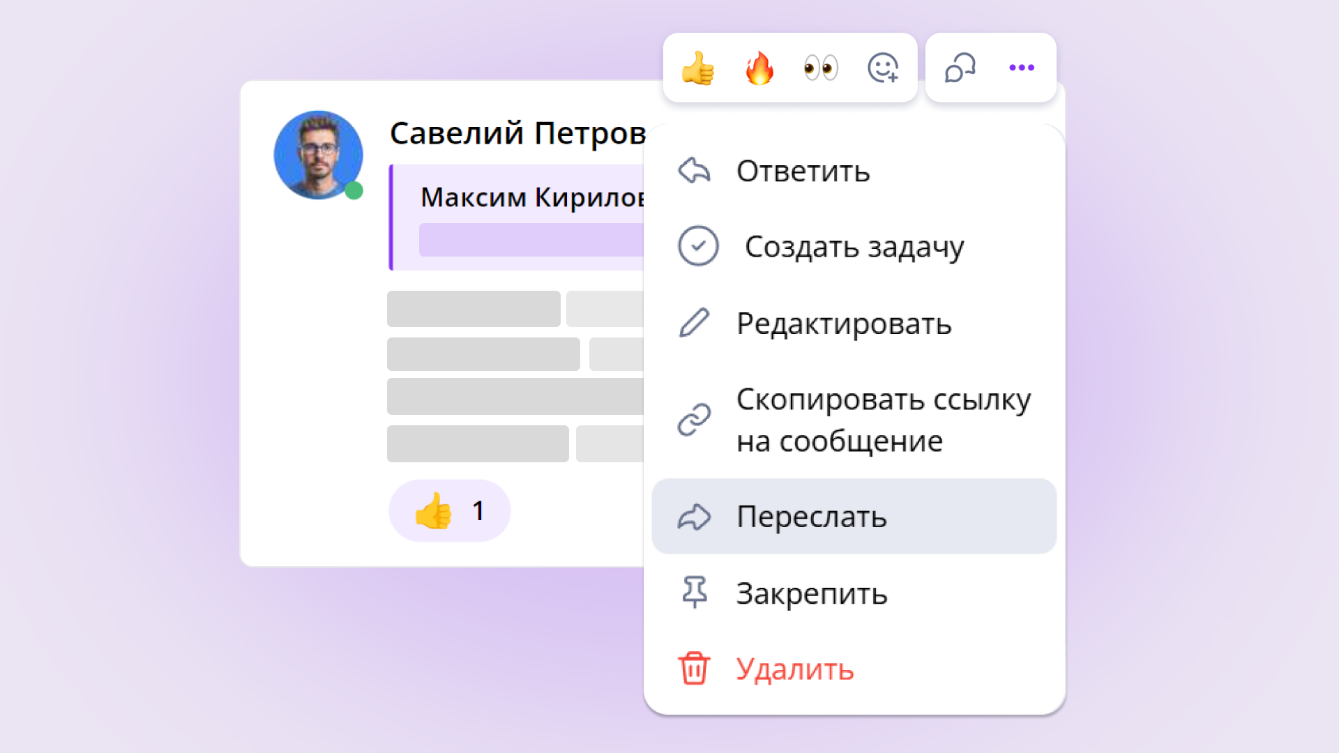 Как сделать: откройте чат, выберите нужное сообщение и нажмите на «Больше действий» (⋯). В открывшемся окне выберите «Переслать». Далее выберите канал или пользователя, которому вы хотите переслать сообщение.