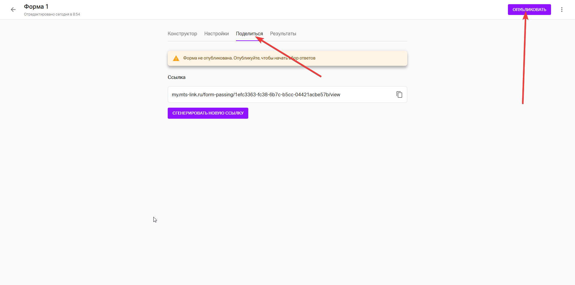 И опубликовать форму. Ссылка для участников находится в разделе "Поделиться":