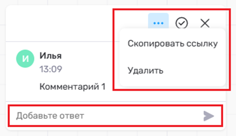 При однократном нажатии на комментарий левой кнопкой мыши откроется окно, в котором можно: