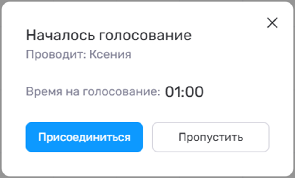 После начала голосования все участники, которые находятся на доске, получат уведомление о его старте. К голосованию можно присоединиться или пропустить его: