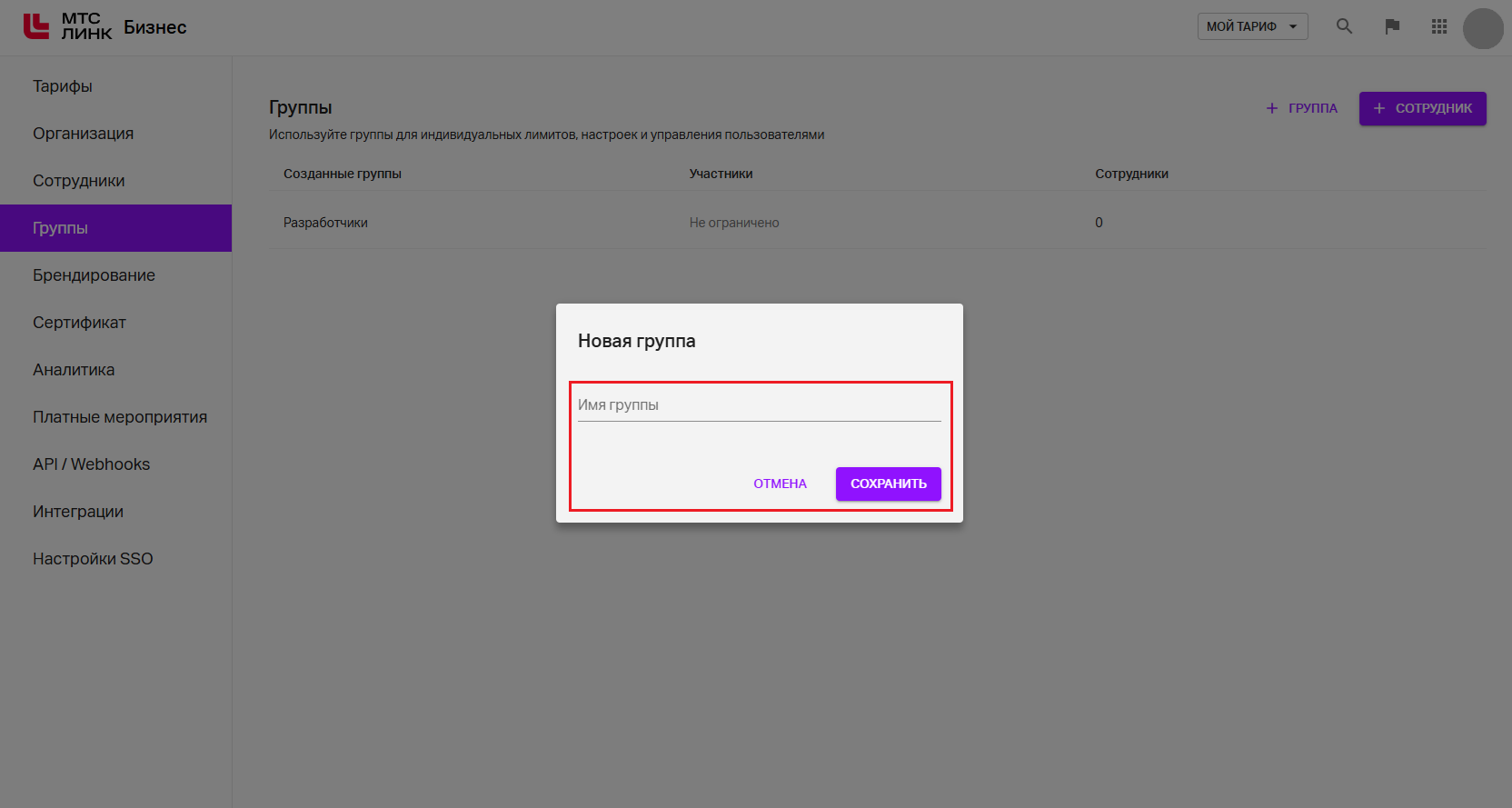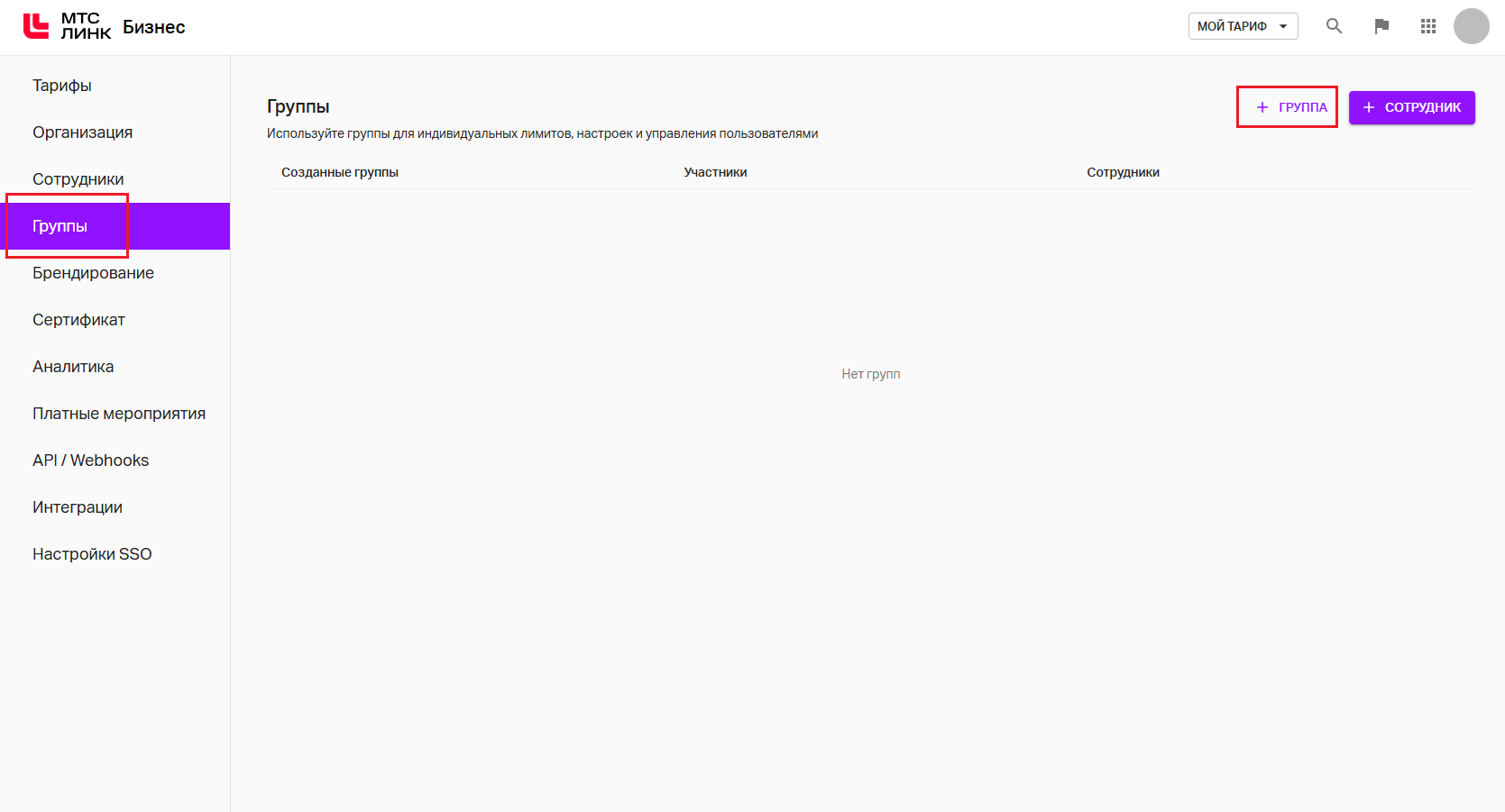 1. Перейти в раздел «Группы» и нажать на « + Группа»:
