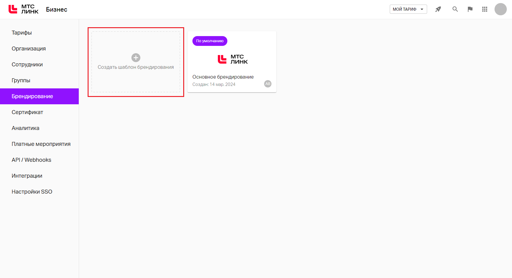 В разделе «Брендирование» можно создавать и выбирать шаблоны брендирования для того, чтобы проводить мероприятия со своей символикой, цветами и другими настройками.