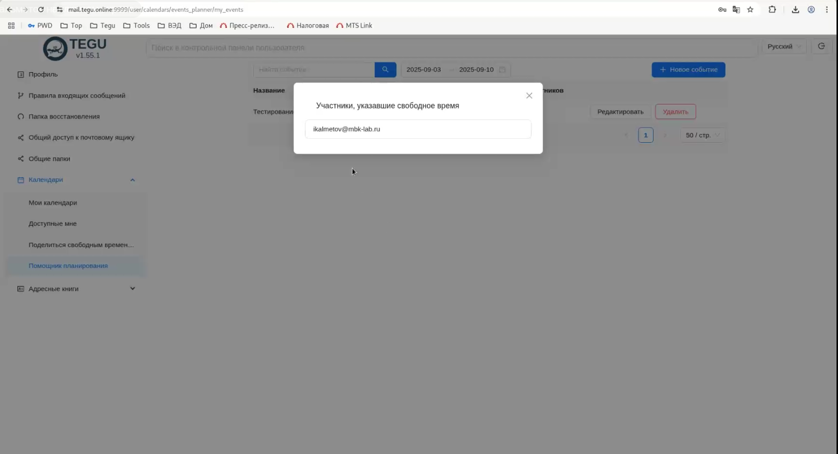 Удаление: Нажмите "Удалить". Скрипт удалит шаблон события в МТС Линк, и все участники получат уведомление об отмене.