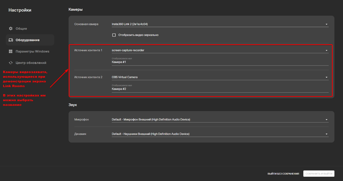 - Основная камера переговорной (только одна),