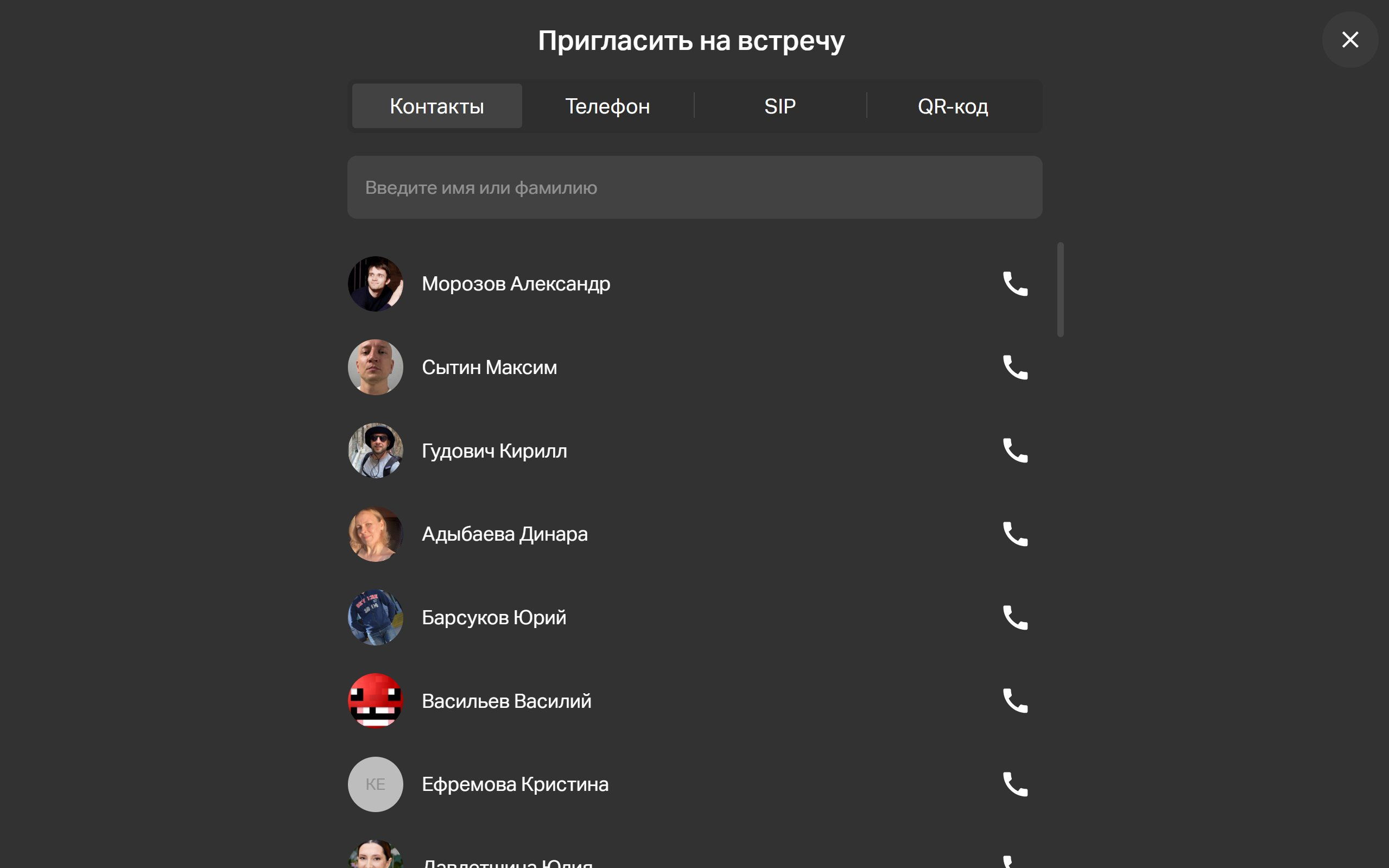 Во вкладке "Телефон" вы можете позвонить на внутренний или внешний номер ваших коллег, если подключена телефония на платформе МТС Линк.