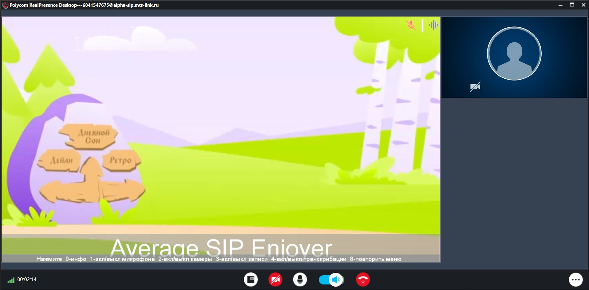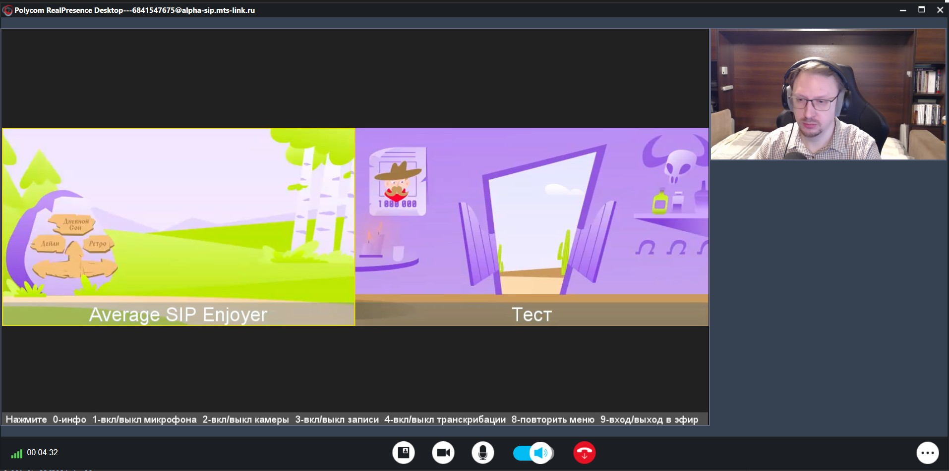 4. Пример: отключена камера, включена запись, SIP участник в эфире нажал "0" (в меню выведена информация о мероприятии)