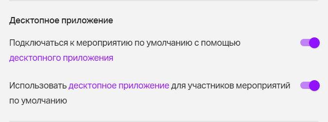 Важно: Если у вас подключен данный функционал, настройки в профиле, устанавливающие десктопное приложение по умолчанию, не влияют на возможность подключения пользователя через мобильный браузер. Пользователи, вошедшие через мобильный браузер, смогут беспрепятственно попасть на вебинар, независимо от этих настроек.