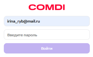 Чтобы впервые зарегистрироваться, перейдите по ссылке из письма от администраторов COMDI, укажите запрашиваемые данные и нажмите «Зарегистрироваться».