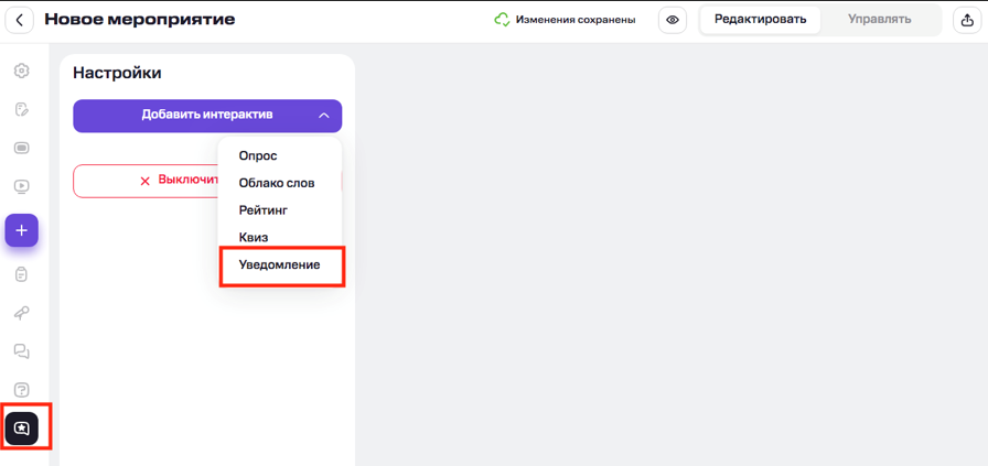 Нажмите «Добавить интерактив» → «Уведомление».