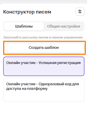 Конструктор писем — это инструмент для создания и настройки email-рассылок мероприятия. Он позволяет подготовить шаблоны писем, настроить общие параметры отправителя и оформления, а затем управлять отправкой — автоматической или ручной.
