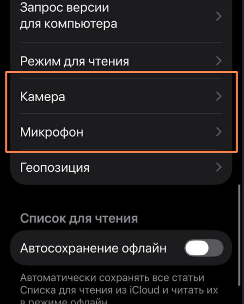 Если при переходе по ссылке в браузере Safari вы не можете получить доступ к вашей камере или микрофону, необходимо проверить глобальные разрешения в настройках iOS. В отличие от сторонних приложений, Safari настраивается в отдельном меню.