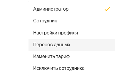 Важно: Автоматического переноса данных нет, но при исключении сотрудника можно выбрать, оставить данные ему или перенести кому-либо из других сотрудников. Если сотрудника лишить доступа, его аккаунт все еще будет находиться в организации. Администратор или создатель организации могут перенести данные другому сотруднику и исключить его. Файлы сотрудника, который был исключён, доступны в разделе общих файлов.