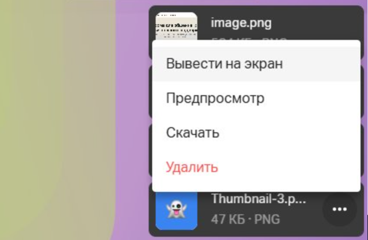 Из чата можно вывести файл на экран всем участникам, как обычно.