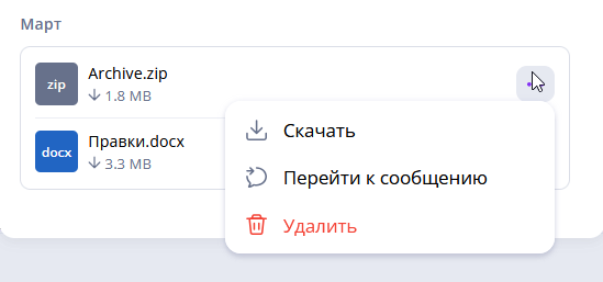 Можно скачать файлы и перейти к сообщению, чтобы вспомнить контекст.