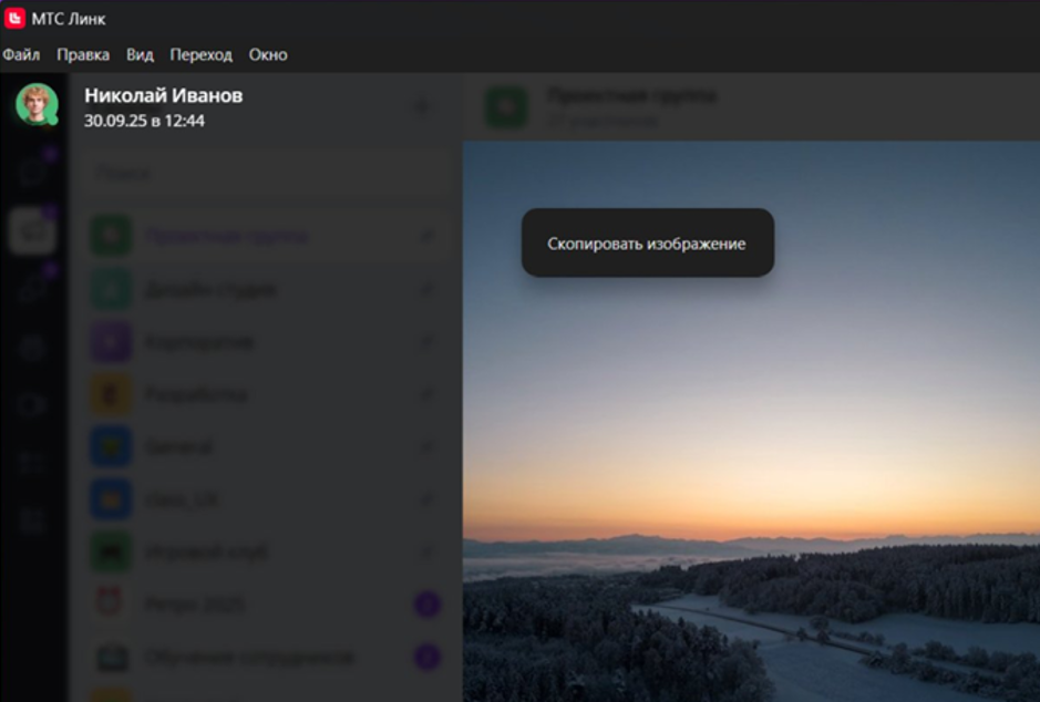 Теперь в приложении МТС Линк для компьютера можно быстро копировать изображения правой кнопкой мыши. Работает в ленте чата и в режиме просмотра.