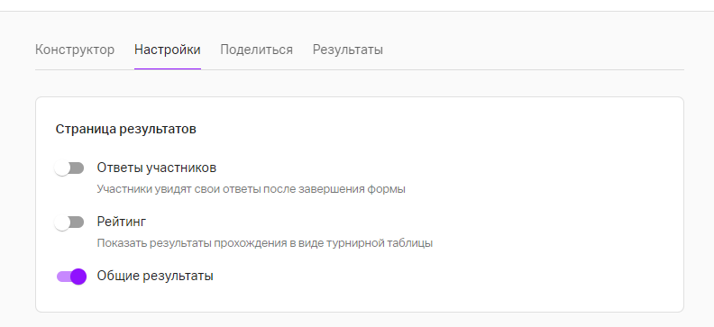 1) Для вывода облака слов необходимо включить параметр «Общие результаты» в настройках формы.